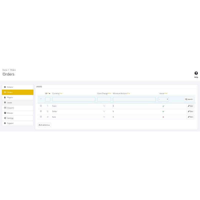 - Go to Orders and enable/edit your currency.
